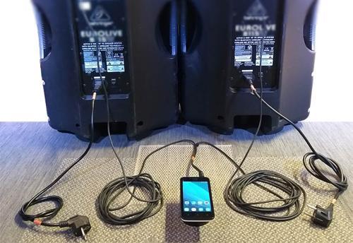 Koppla ihop aktiva högtalare, mobil, AUX-kabel