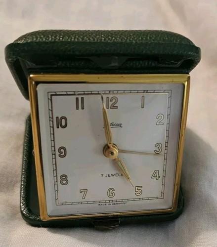VINTAGE KAISER LEATHER CASE FOLDING TRAVEL 7 JEWEL ALARM CLOCK...