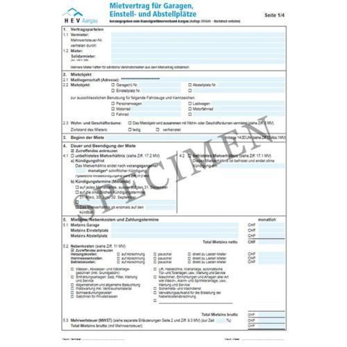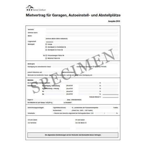 Mietvertrag für Garagen, Einstell- und Abstellplätze (Kanton...