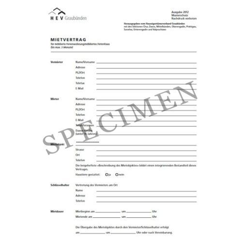Mietvertrag für Ferienwohnung / Ferienhaus (Kanton Graubünden)
