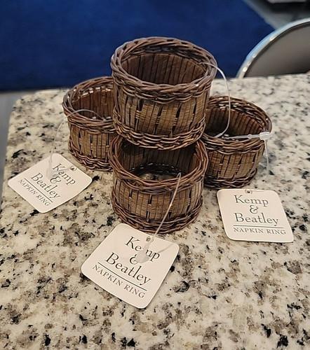 4 NEW KEMP & BEATLEY Wicker Rattan Basket Weave Boho Tropical...