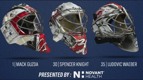 Charlotte Checkers goalie helmets designed by kids at Novant...