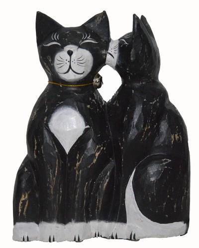 Love KISSING Cats kittens Handmade Carving Wood Home Sculpture...