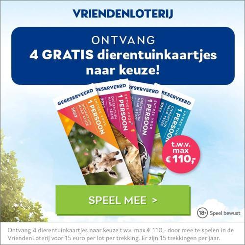 VriendenLoterij dierentuinkaartjes t.w.v. € 110.- liggen Gratis...