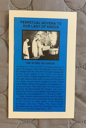 Our Lady of Knock Relic holy prayer card & relic anointing oil.
