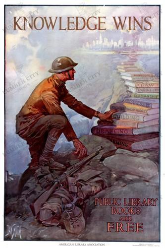 Knowledge Wins 1918 WWI Library Association Propaganda Poster...