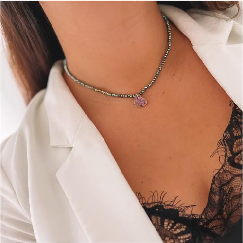 naszyjnik stal chirurgiczna koraliki serduszko kryształki kolor...