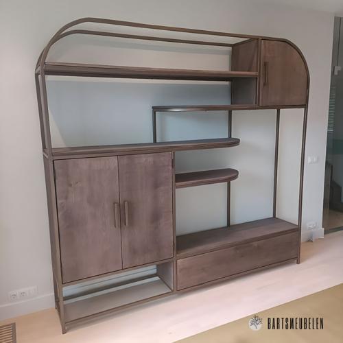 Maatwerk vakkenkast van eikenhout en koper staal | Bartsmeubelen