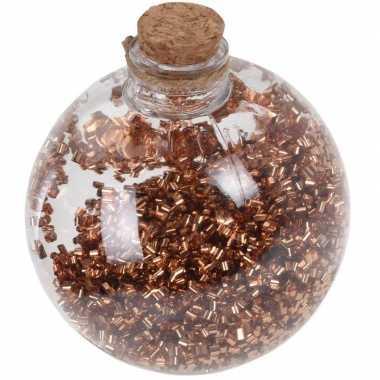 1x doorzichtige fles kerstballen 8 cm glitter koper kunststof...