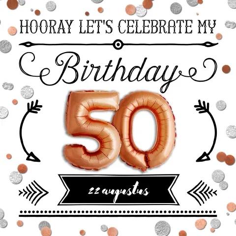 Uitnodiging 50e verjaardag met koper kleur ballon