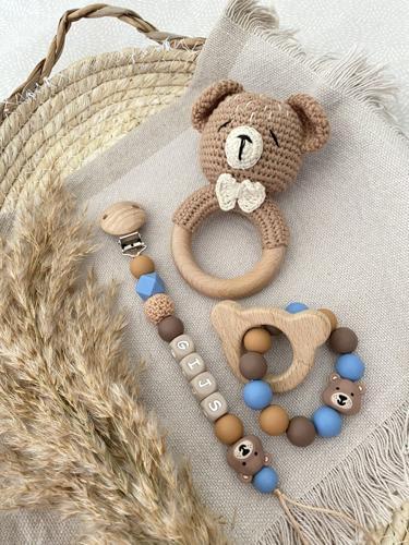 Kraamcadeau set beer blauw | Luxe Speenkoorden