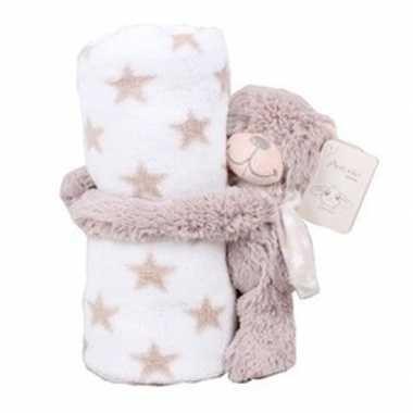 baby kraamcadeau sterrenprint fleecedeken teddybeer knuffel...