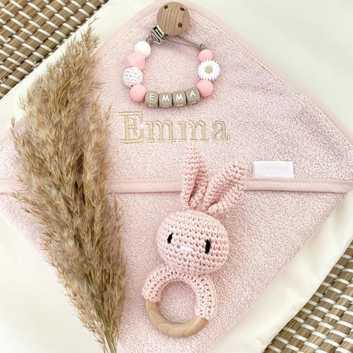 Kraamcadeau badcape roze | Luxe Speenkoorden