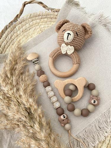 Kraamcadeau set beer bruin | Luxe Speenkoorden
