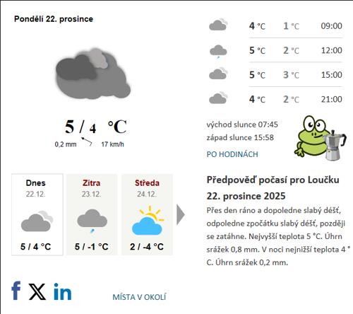 Počasí Loučka, Jihomoravský kraj dnes - aktuální předpověď...