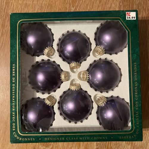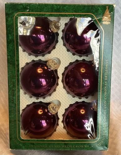 Krebs IMPERIAL PURPLE Shiny Ornaments, Box of 6. GLASS...