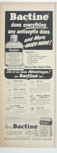 1955 BACTINE Antiseptic Bottle Miles Labs Vintage Magazine...