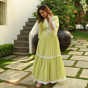 Bunaai MELLOW GREEN WHITE LACE DRESS