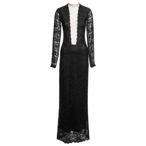 Alexander McQueen Black Lace Evening Dress with Plunging...