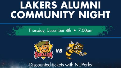 NU Lakers Alumni Community Night with the North Bay Battalion...