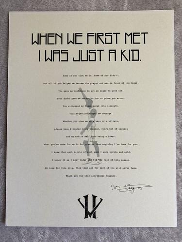 KOBE BRYANT LOS ANGELES LAKERS RETIREMENT FARWELL LETTER...