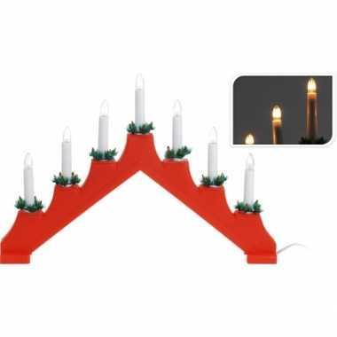 Rode led kaarsenbrug warm wit 7 lampjes | Kaarsenbrug.nl