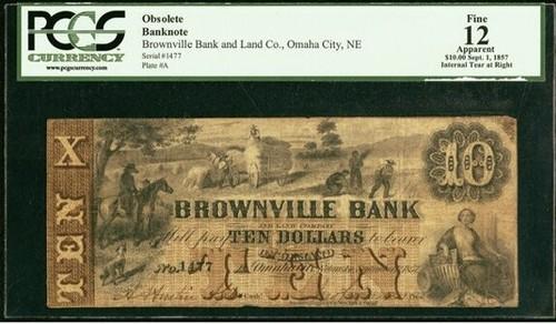 1857 $10 Omaha City, NE Brownville Bank and Land Co. PCGS 50...