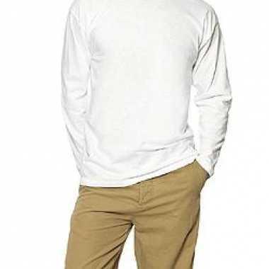 Basic heren t-shirt wit met lange mouwen...