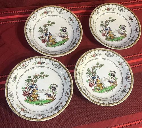 VINTAGE COPELAND LATE SPODE BIRD OF PARADISE CHELSEA SOUP BOWLS...