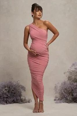 CLUB L LATE NIGHT Blush Pink Maternity Ruched One Shoulder Midi...
