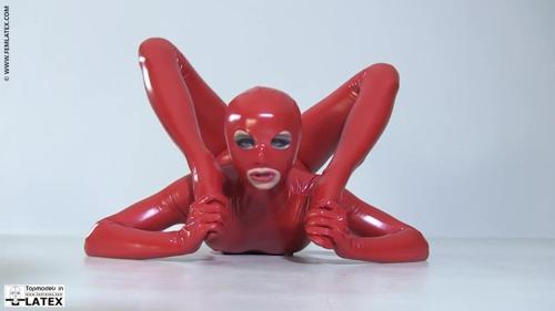 Flexible Slut In A Red Latex Catsuit - Flexible