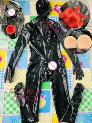 Latex catsuit with inflatable breast men cross-dressing custom...
