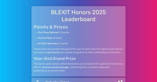 BLEXIT Honors 2025 Leaderboard