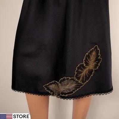 VTG Women's Half Slip Skirt Satin Embroidery Golden Leafs...