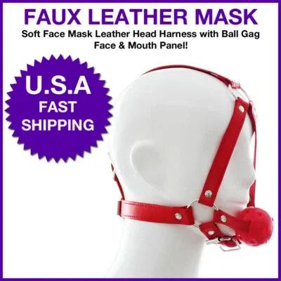 Soft Face Mask Leather Head Harness with Ball Gag Mouth face...
