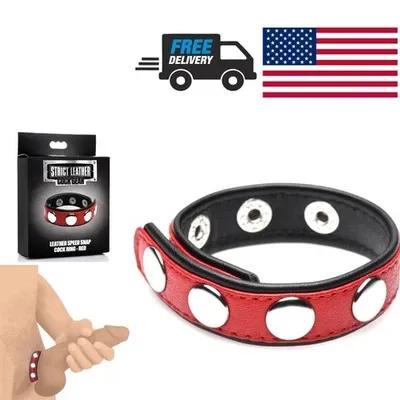 Men's Red Cock Ring Real Leather Adjustable Snap Ring for...