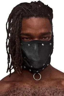 Men's Studded Leather Look Face Mask and Collar Set O-Ring...