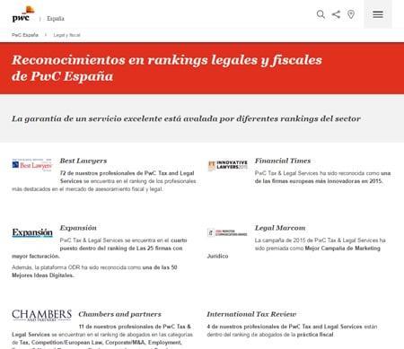 Reconocimientos en rankings fiscales y legales de PwC España