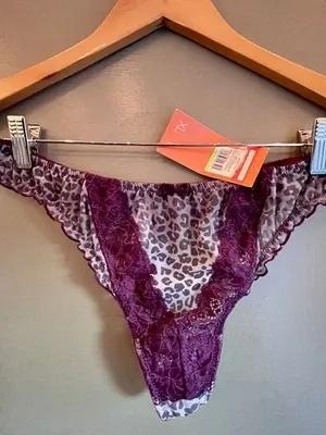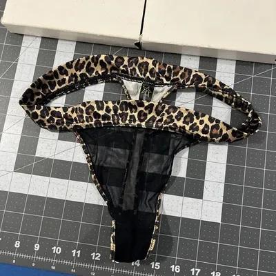 Playtex Vintage Leopard Print Satin Thong String Bikini Sz 3XL...