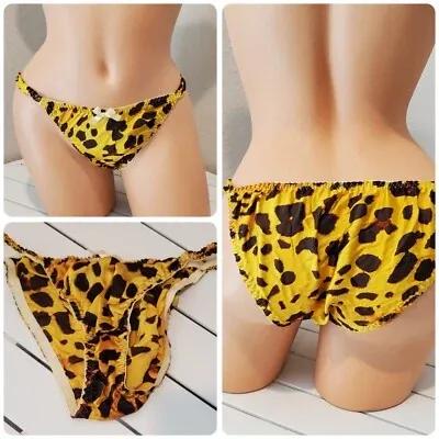 Shiny String Bikini Panty Double SILK Gusset 8/XL Leopard PRINT...