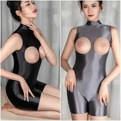 Women Wetlook Bodysuit Zipper Catsuit Leotard Jumpsuit Lingerie...