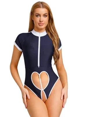 Womens Anime Schoolgirls Lingerie Bodysuit Hollow Out High Cut...