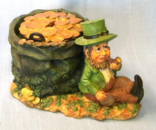 Unique St Patrick Coin Bank Pot of Gold Leprechaun Gold colored...