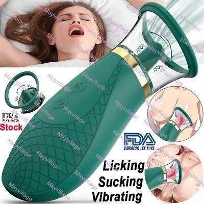 Tongue Licking Sucking Vibrator Sex Toys for Women Nipples Anal...