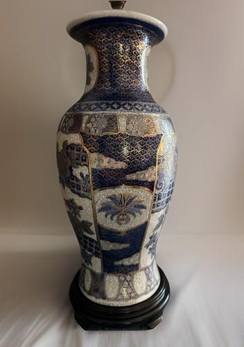 Antique Satsuma Ginger Jar Lamp Blue Cobalt Gold Lid Imari...