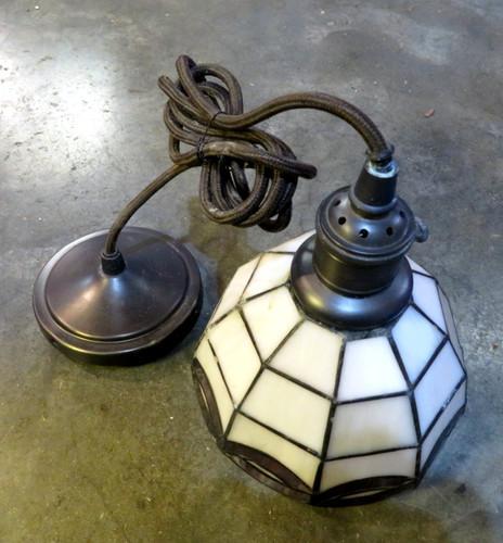 Vintage Small Leaded Stained Glass Pendant Hanging Light...