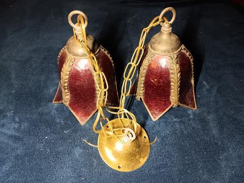 Vintage Red Light Fixture Pendant Set Of 2 Brass Frame W Base...