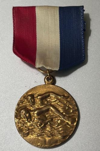 Vintage Swimming "Gold" Medal with Ribbon Pinback Likely AAU c...
