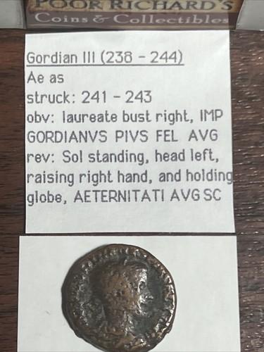 Gordian lll 238-244 Ae As 20+mm High Quality Roman Bronze R1307