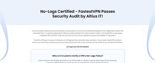 No-Logs Certified - FastestVPN Passes Security Audit by Altius...